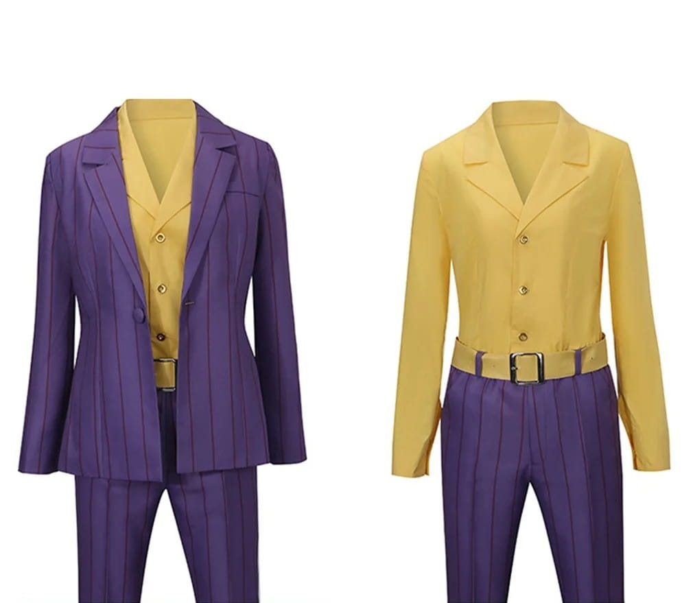Jeśli marzysz, żeby wcielić się w najbardziej barwnego członka ekipy Akudama – ten strój to strzał w dziesiątkę! Cosplay Hoodluma to perfekcyjne połączenie luzu, odwagi i odrobiny komicznej przesady. Fioletowy garnitur w delikatne prążki i kontrastowa żółta koszula to zestaw, który przyciąga spojrzenia – zarówno na konwencie, jak i podczas sesji zdjęciowej.