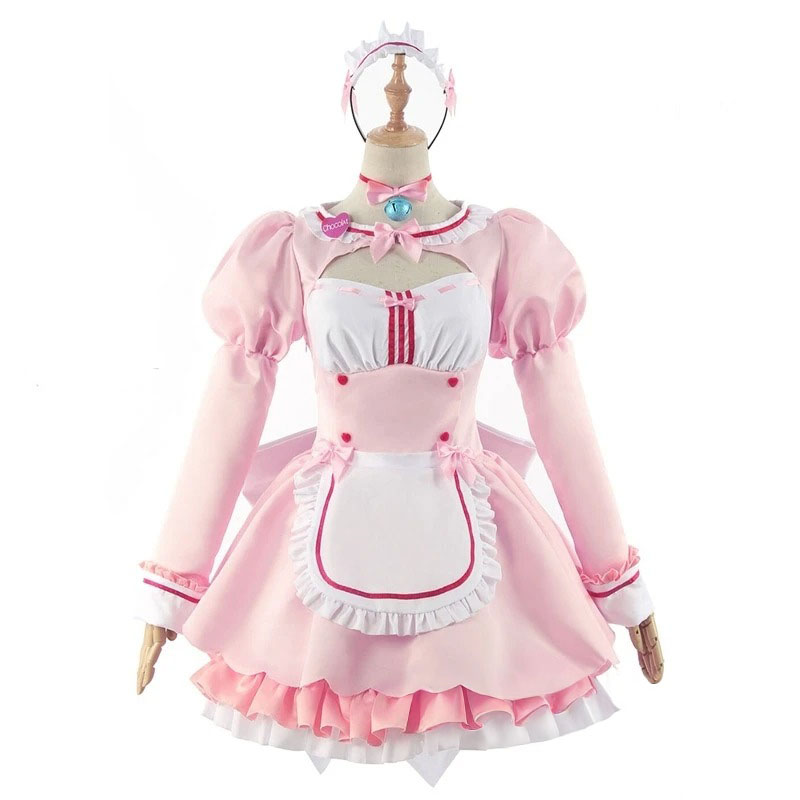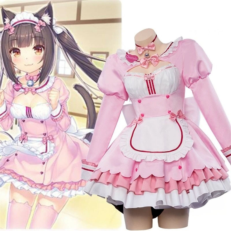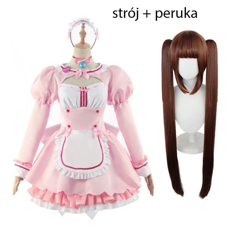 Cosplay Chocola inspirowany anime Nekopara to świetny wybór dla fanów, którzy chcą stworzyć efektowny i rozpoznawalny strój. Różowa sukienka z falbankami, ozdobami oraz dopasowanymi dodatkami tworzy charakterystyczny styl, który wyróżnia się na konwentach i wydarzeniach cosplayowych.