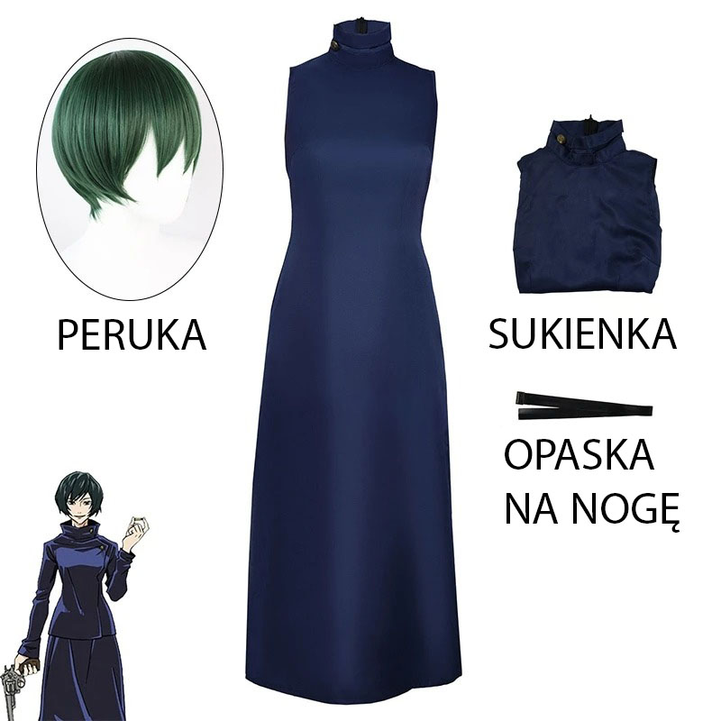 Ten cosplay Mai Zenin z Jujutsu Kaisen został zaprojektowany z myślą o cosplayerach, którzy chcą wiernie odtworzyć wygląd postaci z anime. Kostium składa się z charakterystycznej granatowej sukienki o prostym kroju oraz opaski na nogę, które razem tworzą rozpoznawalną stylizację inspirowaną strojem bohaterki.