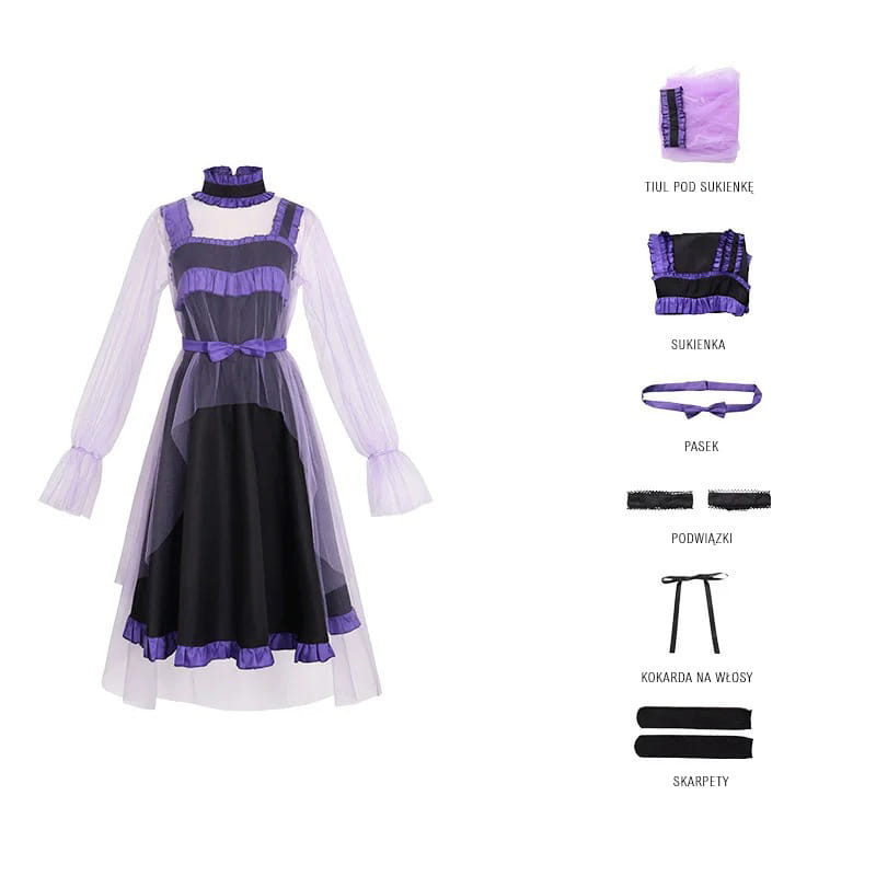 Chcesz wcielić się w jedną z najbardziej intrygujących postaci z Oshi no Ko? Zestaw cosplay Kurokawa Akane to idealny wybór dla fanów, którzy cenią sobie zarówno styl, jak i dokładność odwzorowania. Delikatne tiule, fioletowe detale i subtelne warstwy sprawią, że poczujesz się jak gwiazda na scenie - lub na konwencie.