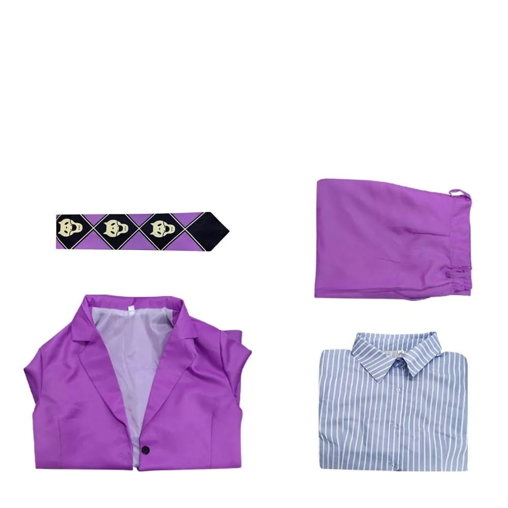 - Zestaw zawiera: Kostium składa się z górnej części, dolnej części oraz dodatków, które doskonale oddają charakter stylu JoJo's Bizarre Adventure.