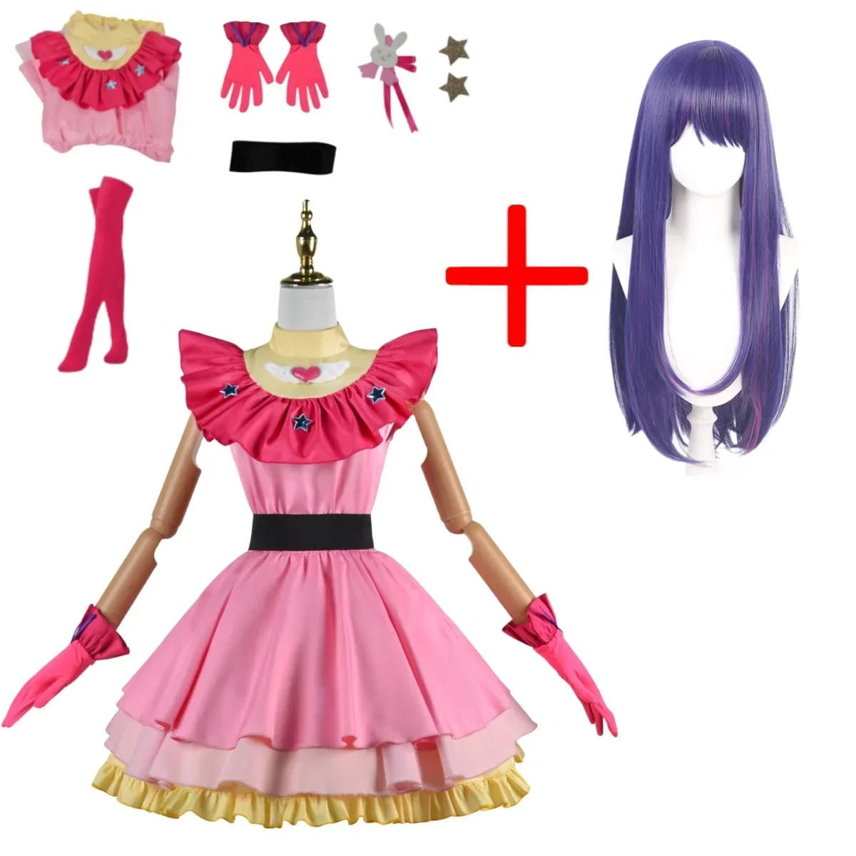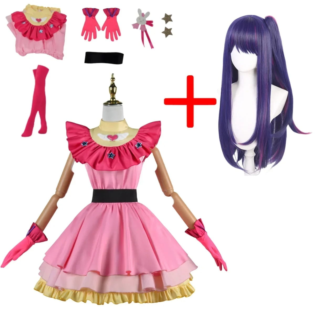 - Zestaw: Kostium zawiera kultową sukienkę Ai Hoshino, opaskę na głowę oraz dodatki, które wiernie odzwierciedlają jej idolowy styl.