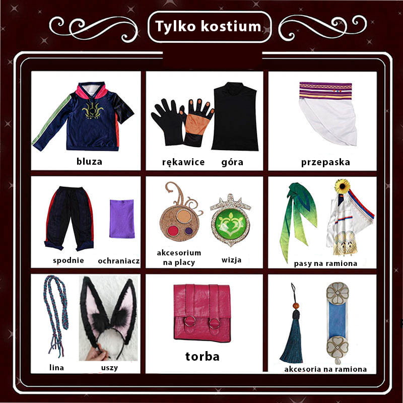 Cosplay Tighnari to doskonały wybór na imprezy cosplay, konwenty oraz jako wyjątkowy element twojej kolekcji "Genshin Impact". Zestaw ten spełni oczekiwania zarówno początkujących, jak i doświadczonych cosplayerów.