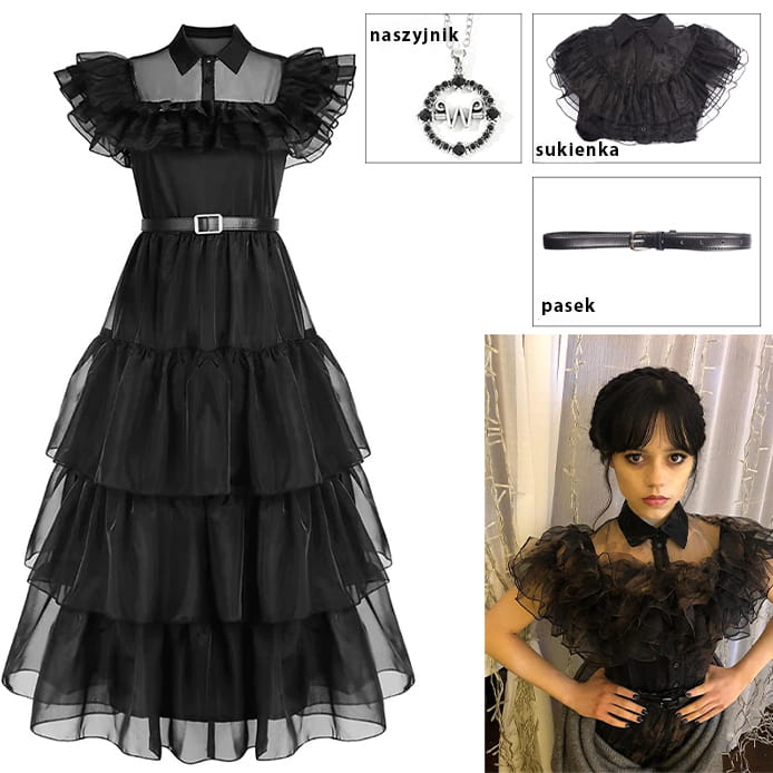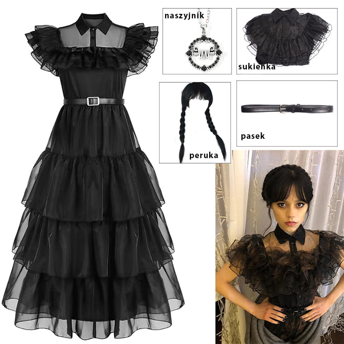 Przedstawiamy zestaw cosplay "Wednesday" - idealny dla fanów tej niezapomnianej postaci.
