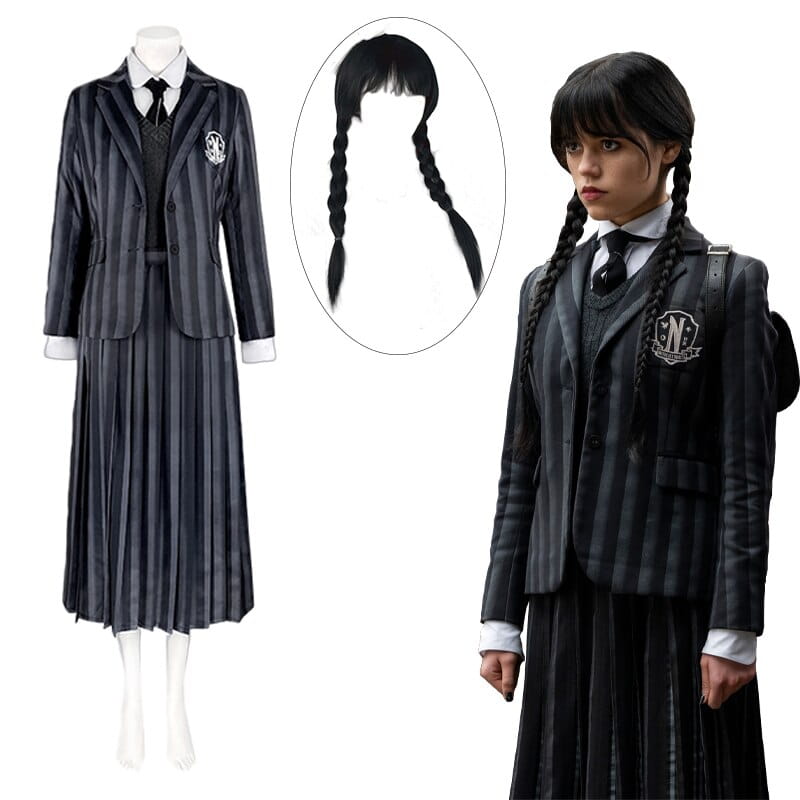 Przedstawiamy zestaw cosplay "Wednesday" - idealny dla fanów tej niezapomnianej postaci.