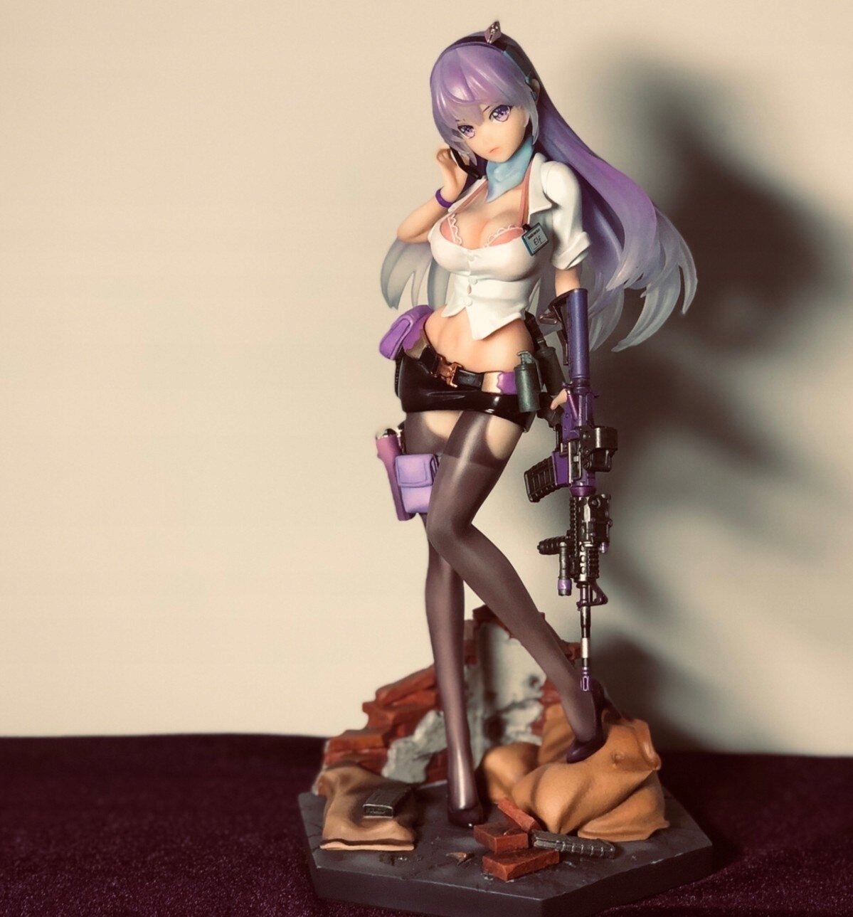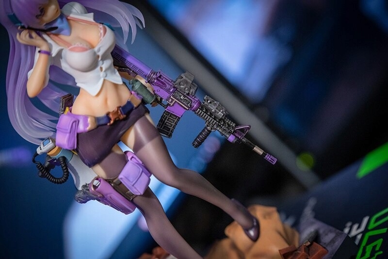 Realistyczna figurka przedstawiająca seksowną dziewczynę z bronią w skąpym ubraniu