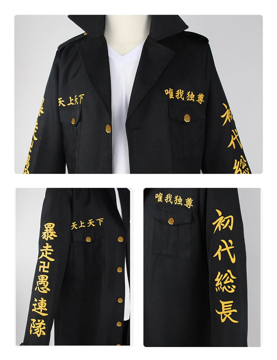 - Szczegółowe odwzorowanie postaci: Zestaw zawiera wszystkie kluczowe elementy, które podkreślają charakterystyczny styl Manjiro Sano, w tym jego unikalne kolory i fasony.